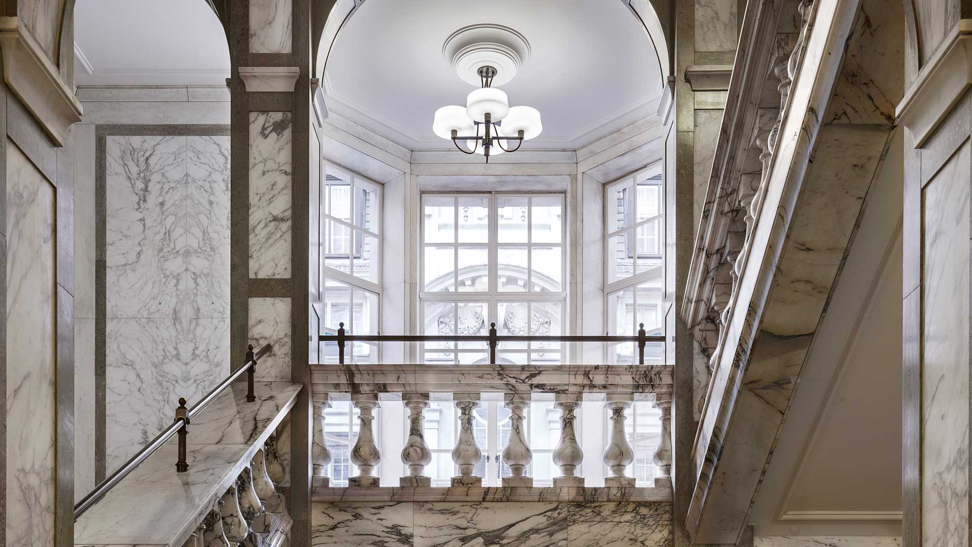 Opening at a time of turmoil with the First World War looming, the building gradually expanded over nearly fifty years, during which time it was the headquarters for the Pearl Assurance Company. The lavish interiors are fitted out with Cuban Mahogany and seven types of marble, including extremely rare types such as Swedish Green and Statuary. The principal facades as well as the interiors of the former East and West Banking Halls (now Holborn Dining Room and the Bar respectively) and the grand Renaissance-style seven story marble staircase are the significant heritage features.